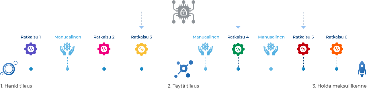 - Informaatio ei kulje sujuvasti eri vaiheiden ja järjestelmien välillä ydinprosesseissamme